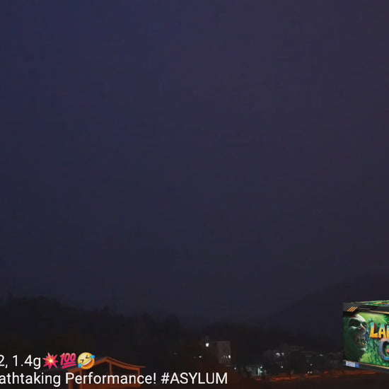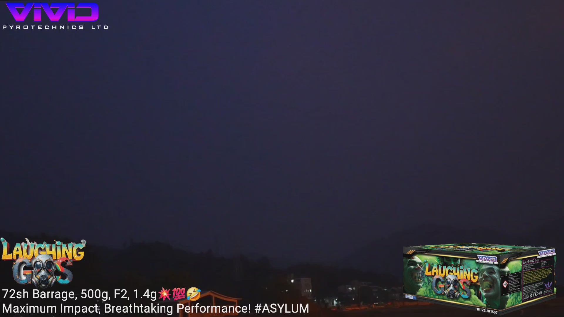 Begins with time-rain mines that are topped with blue layered bursts. Gold comet tails rise and split into further effects, red and green whistling comet-type effects are included, which then leads into gold brocade bursts with silver strobe accents.